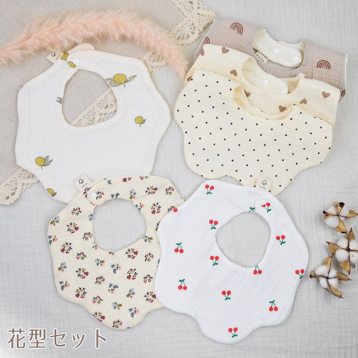 スタイ ガーリービブ 360° 花型 U型 6枚 セット 女の子 かわいい おしゃれ よだれかけ ベビー コットン100% BMC bib.
